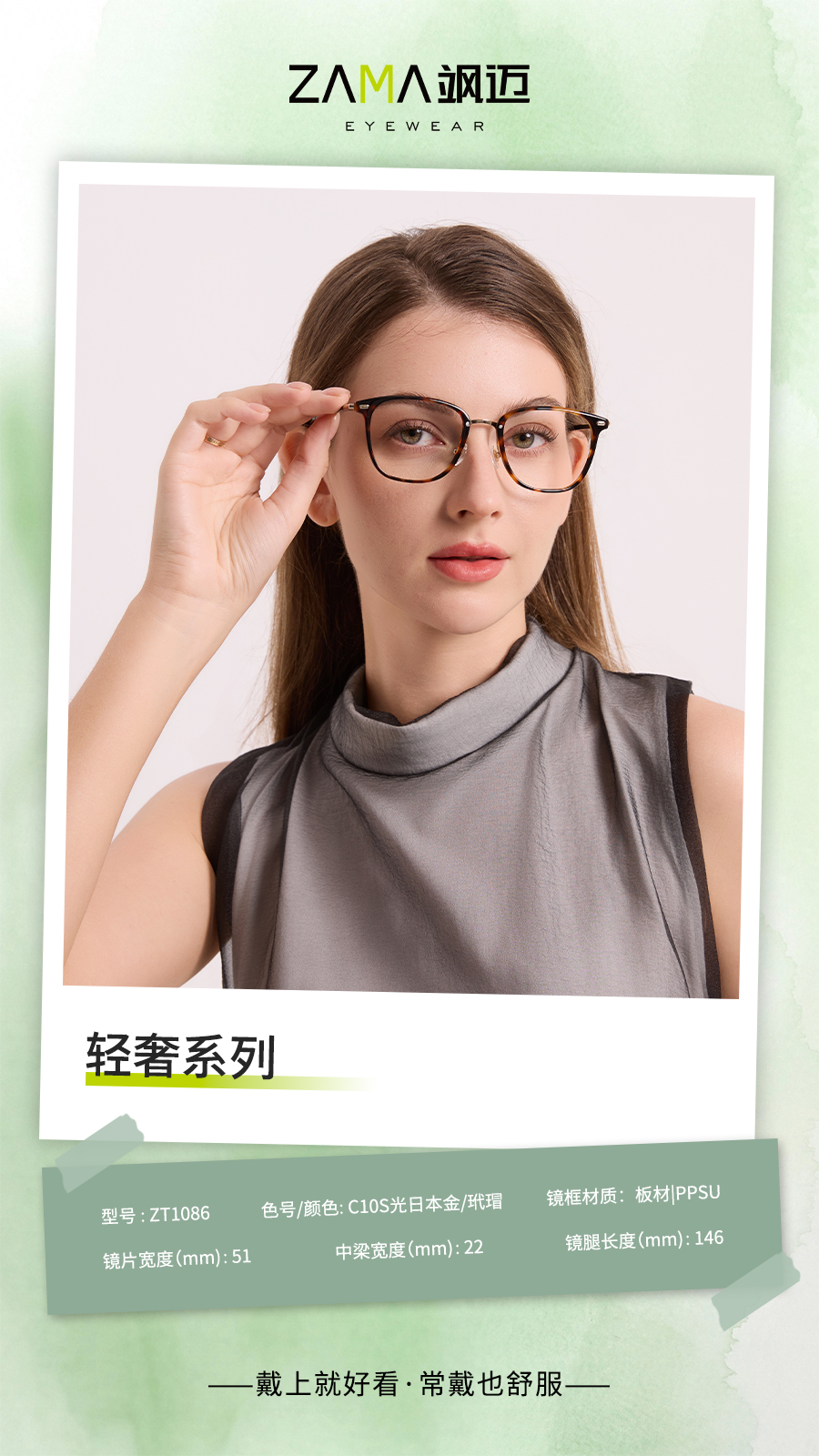 | ZT1086-C10S | 镜圈:光日本金/玳瑁 | 镜腿:光日本金/玳瑁 |