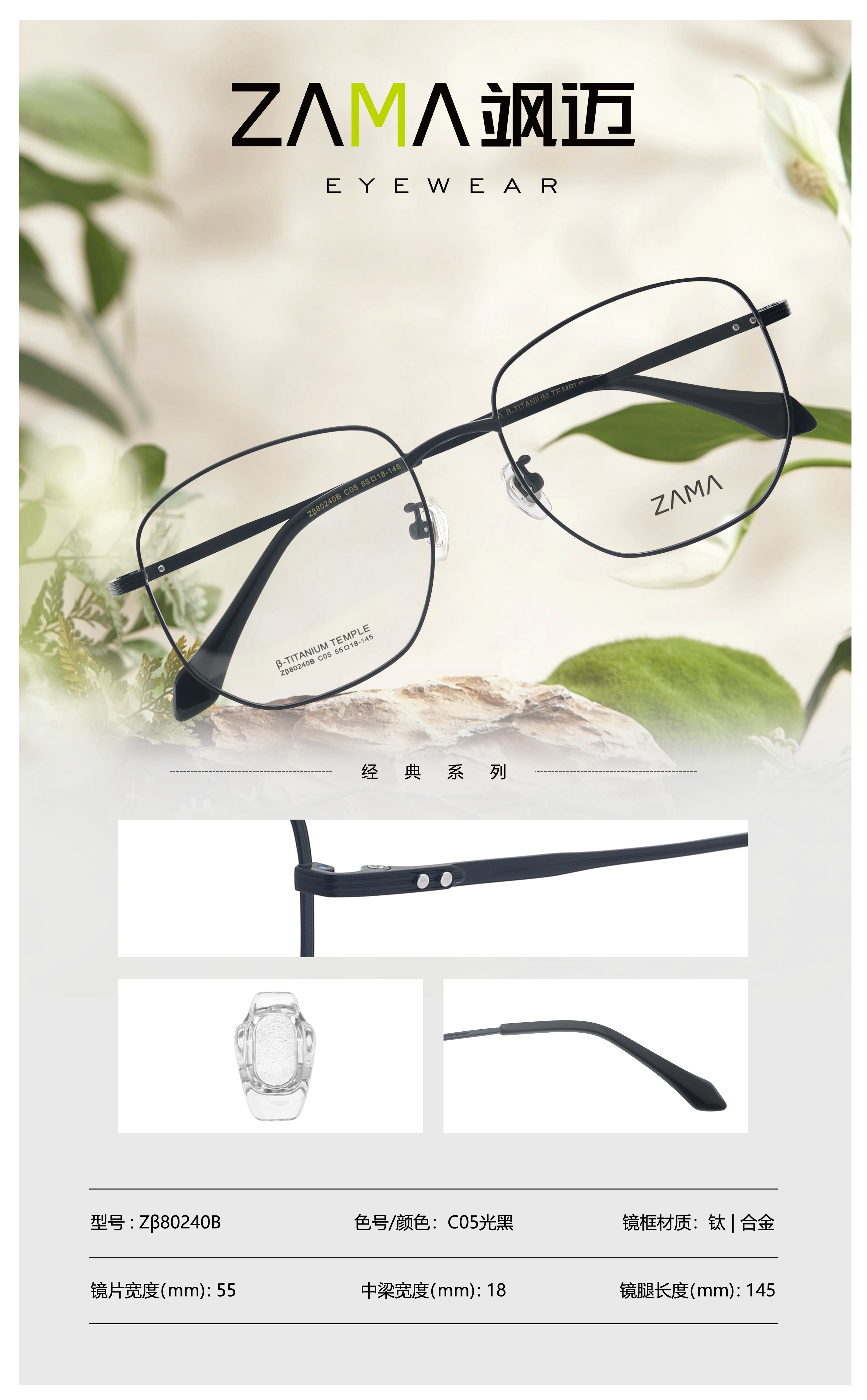 | Zβ80240B-C5 | 镜圈:光黑 | 镜腿:光黑 |