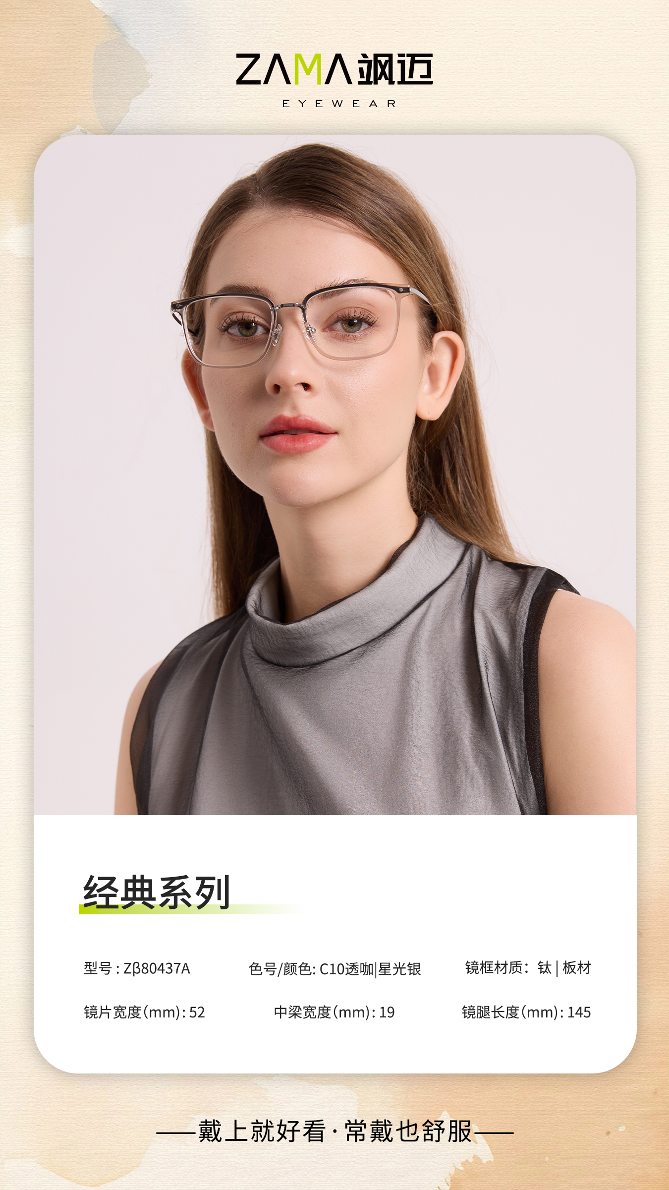 | Zβ80437A-C10 | 镜圈:透咖|星光银 | 镜腿:透咖|星光银 |